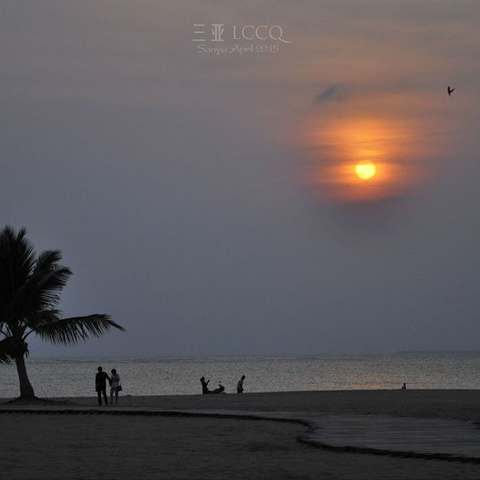 游完泳已经四点多了,上岸后开始了我们此行最奇葩的经历。你不会想到是什么,那就是整个酒店停电了(后来了解到是整个涯城镇全线停电)!我们洗完澡,在有冷气余温的房间里休息了一会,温度渐渐高起来,此时太阳快下山了,外面比较凉快,于是我们到沙滩上去吹风,正好欣赏涯州湾最美日落。