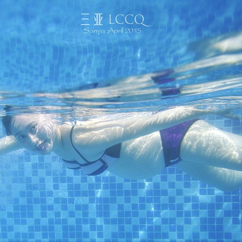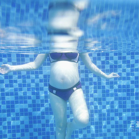 除了游泳我们还计划在泳池里拍几张孕妇照,为此提前在网上买了相机防水套,无奈英俊不太会游泳,到了水下不敢睁开眼,最后都是盲拍的。