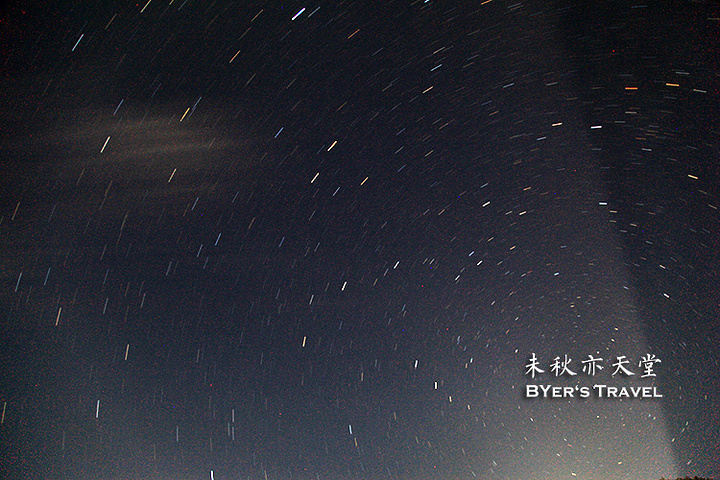 去年此时在塞罕坝也来过一张差不多的,要坚持做解救自己的天使到底。继续刚刚说的,乱舞得正High时候,身旁不到一米出现一个黑影,仔细看是当地的一个大叔,默默地站在旁边看我们拍。或许是觉得大晚上的,又没什么风景,两个人在这里瞎胡闹很奇怪也很好奇;也或许是因为这里的生活实在是太简单太重复,陌生人带来的小乐子很能引起他们的兴趣。