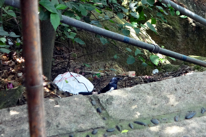 树叶下有条蓝尾巴的小壁虎?蜥蜴?反正是四条腿的小家伙,跑得很快