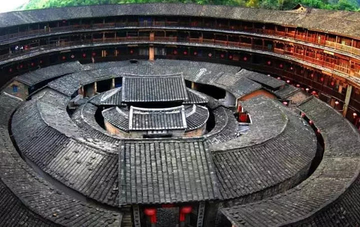特点 | 土楼,是利用未经焙烧的按一定比例的沙质黏土和黏质沙土拌合而成的泥土,以夹墙板夯筑而成墙体(少数以土培砖 砌墙)、柱梁等构架全部采用木料的楼屋,简言之,就是以生土版筑墙作为承重系统的任何两层以上的房屋。