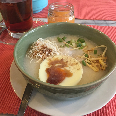 美好的一天继续从早餐开始,酒店的泰式粥,感觉很像米糠,配了一个颗煎蛋,咸咸的味道,加一点辣椒更好吃,酸奶水果沙拉也很赞