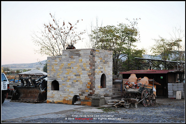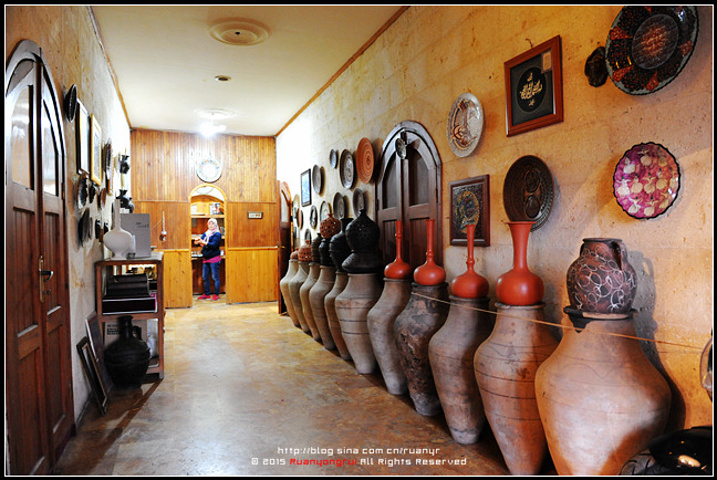 走进工作室,沿着墙根的一排陶罐总有似曾相识的感觉,哦!地下城中墙上的那些凹槽,不就是用来安放这些大大的陶罐的吗?当年避难于地下的赫梯人不就是用它们在地下城中储藏饮水与葡萄酒的吗!?