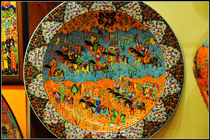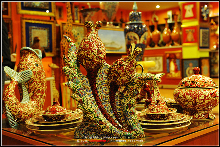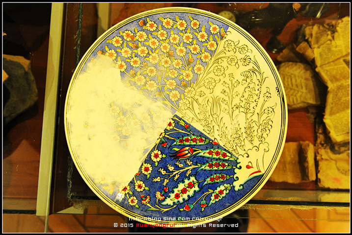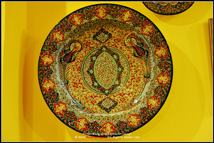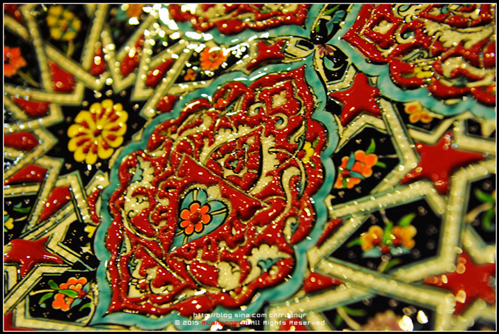 展示间墙上悬挂的装饰用的大盘,虽然上面的花纹都已经是伊斯兰教的蔓草花纹了,但在其中不难找到中国传统青花瓷器中的花纹的影子!