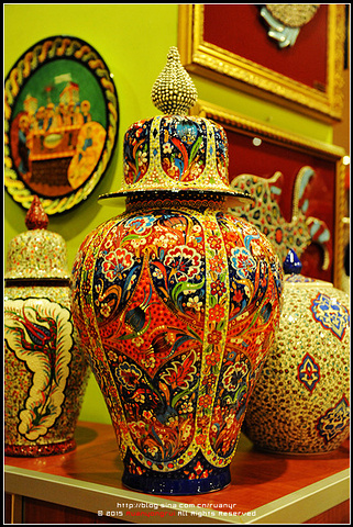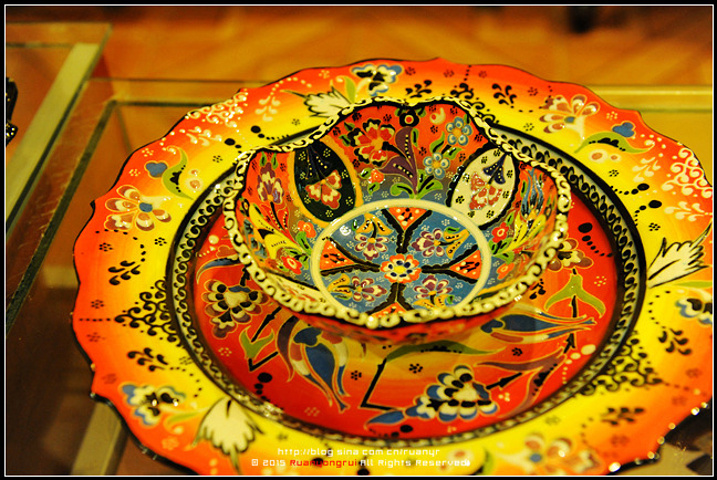 酒壶与挂盘,不论花纹还是色彩搭配,和精品厅里的同类比较,不免都有些俗气了!