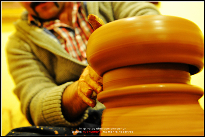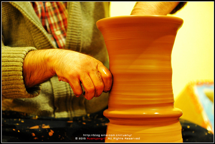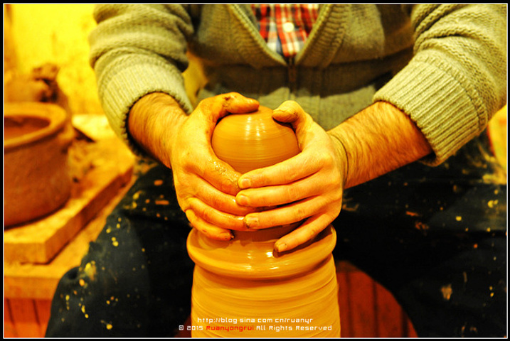 成了!原来他做的是一个中空的圆环,在适当的位置掏一个孔,就成了土耳其传统酒壶的壶身!