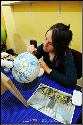 除了像酒壶上的那种规整的图案外,还可以定制陶器上的图案,这个瓶子上正在绘制的就是著名的“最后的晚餐”!
