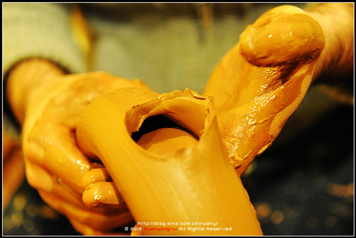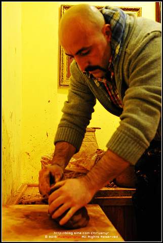 工作室的主人开始准备泥巴为我们演示陶器的制作