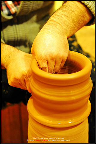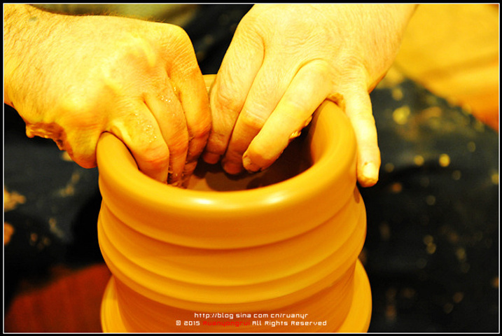 一扭头的功夫,大师傅已经将“陶瓶”的外檐翻了下来,并慢慢的与外壁连接在了一起