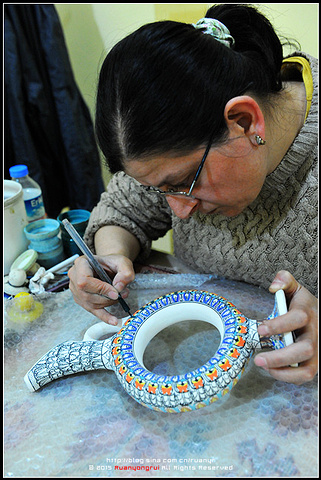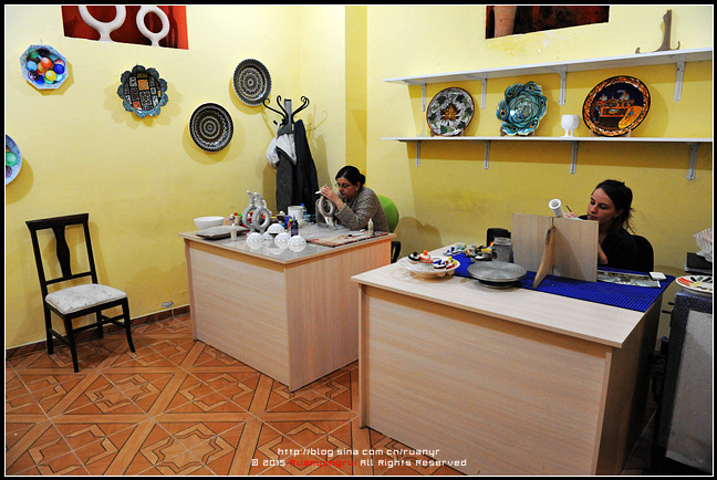 展示间一旁的另一个小房间是这家工作室的“绘制间”,在这里可以看到这里可以看到阿凡诺斯陶器绘制的全过程。