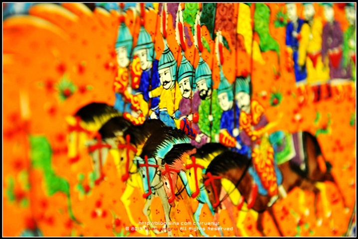 工匠一点点的在纹路中填上相应的色彩,这可是一个细致活儿!