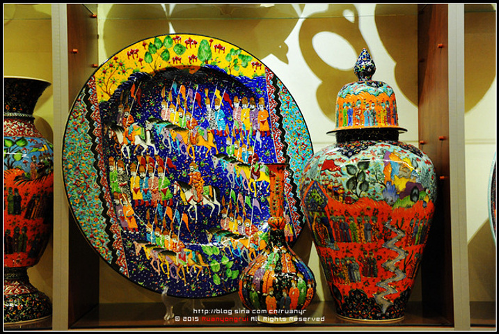 在工艺展示间隔壁,就是这家工作室的精品展厅,不要问我价格,我只能说“好贵”!张片上这几个瓶子,任何一个没有大几千RMD都是拿不走的!