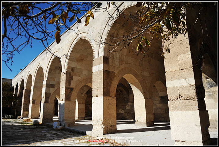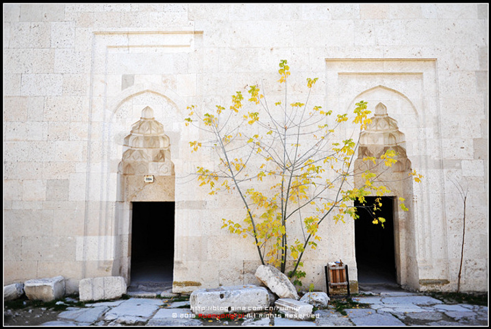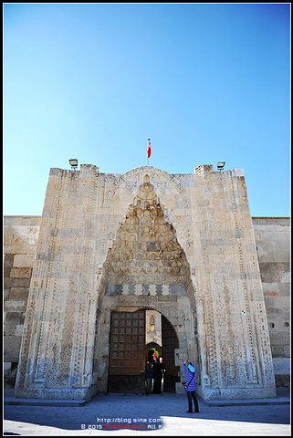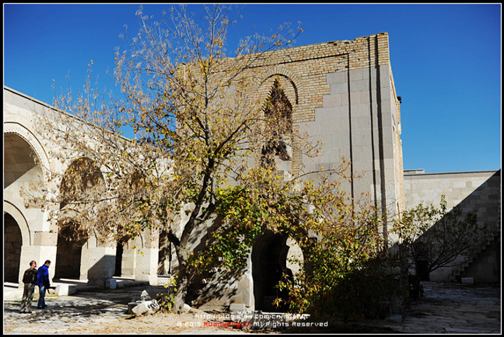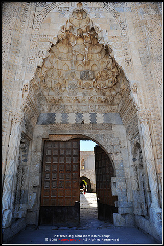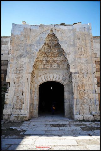 安纳托利亚高原平均海拔1,000米,最高山脉海拔3,000多米,冬季异常寒冷,人畜不宜在户外。院子南面的大厅是专供冬季使用的。这是大厅的入口,与正门的风格一致,装饰相对简单些。
