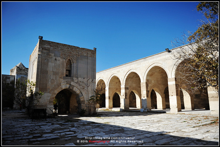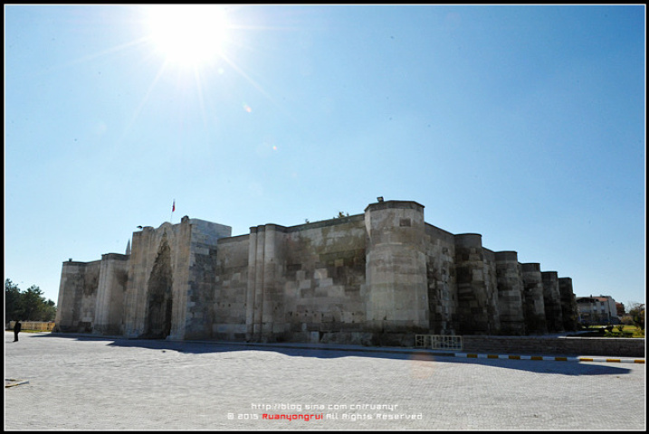 离开卡帕多西亚后我们继续西行,不久就完全置身于茫茫安纳托利亚高原之中。道路两边山峦起伏,内陆高原低矮的植被伴随着远处宛如漂浮在薄雾中的雪山与我们擦身而过。自古以来,这条路就是丝绸之路西段的重要通道,尤其在12-13世纪塞尔柱王朝统治时期,过往的骆驼商队络绎不绝。为使商队及时得到补给和休整,沿途每20公里就修建一个驿站,最多时驿站的数量有上百个,至今仍保留的还有近40个,这些驿站不仅成了丝绸之路重要的历史见证,也已经成了难得的观光景点!