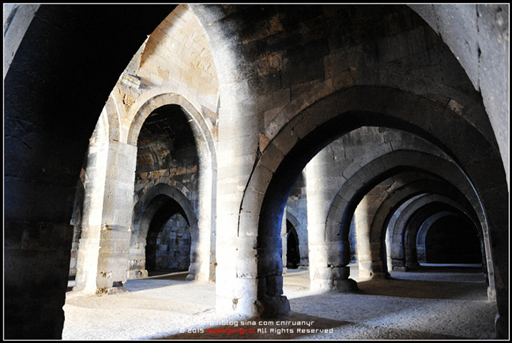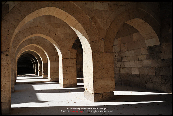 庭院的另一边是典型的双拱廊结构,拱廊用途半为货仓、半为马厩和栓骆驼的地方。
