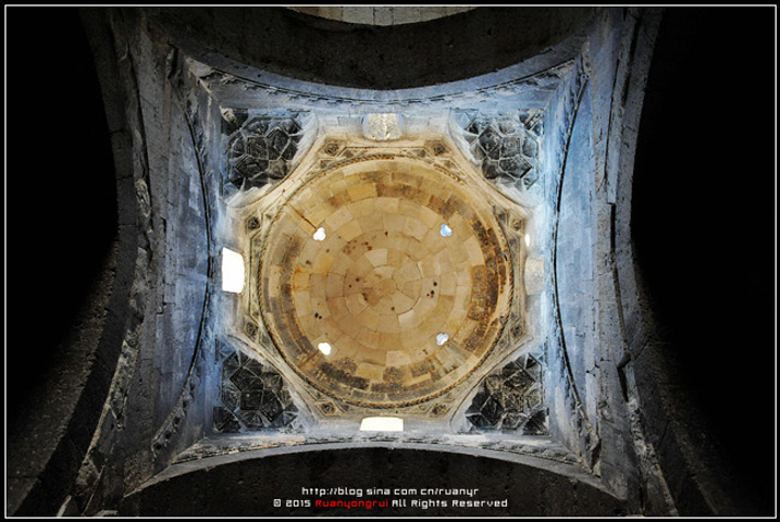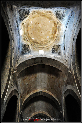 大厅高15米,窗户很小,这也使得整个大厅黑洞洞的