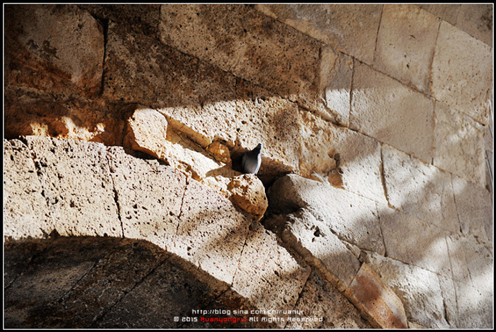 进入门内,两边壁龛虽然已经破损,但依旧十分抢眼,黑色与浅色石料相间,对比鲜明、错落有致。