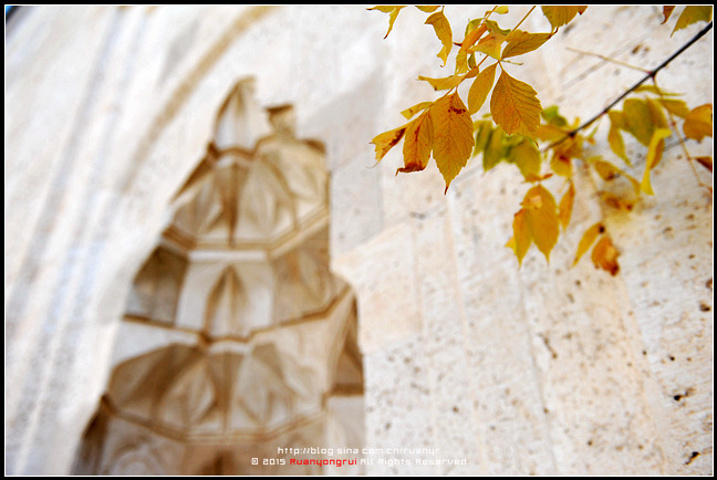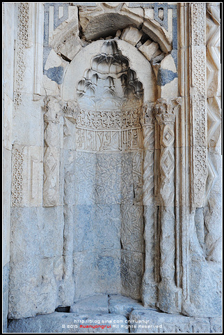 尤其是门拱顶端雕刻的繁复而规则的花纹,这是典型的伊斯兰风格,据说这种石料只有安塔托利亚地区才有,也只有这种石料才能保证如此精细的雕刻历经了几百年,依旧光亮如新