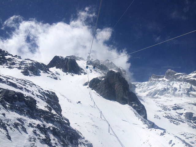 平生没有上过雪山,缆车不断上升,缆车外时不时看到崩落的雪块,高空中升腾的烟雾,内心还是好激动的,忍不住拍了好多的视频。