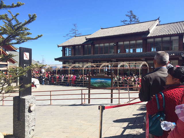 纯玩团还包括一顿自助餐,饱餐之后,坐雪山公交继续上行,排队等待坐缆车。