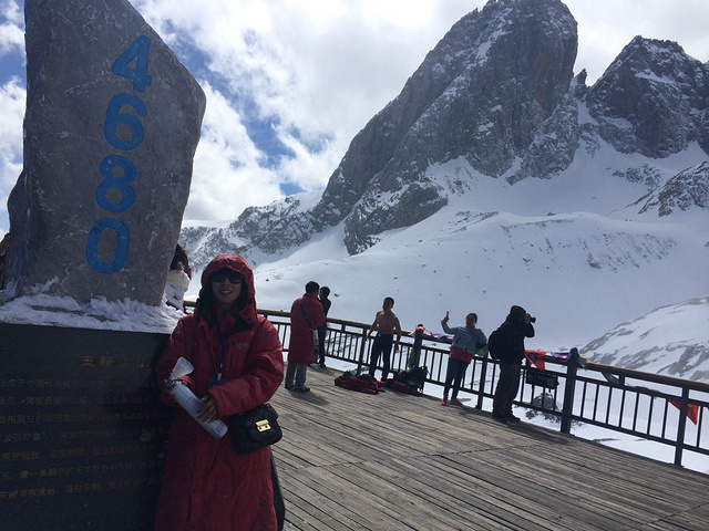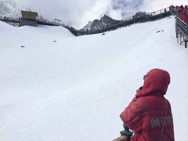 大索道只到海拔4506米的地方,游客所能到的雪山最高点是4608米,修建有栈道,要靠自己走上去。当时在雪山上没感觉,直到今天再次翻到照片,在海拔4km处的雪山上修建栈道这是一件多么困难多么危险的事情,致敬勤劳伟大的工人们!