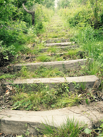 印象最深的还是木制的栈道,木头都是就地取材,不加任何人工雕饰。在这么美丽的山间,一切人为的修饰都显得是多余。摸上去木头的纹理和树皮表面的凹凸触及到手心,是岁月的痕迹,也是生命留下的足迹。朴实无华的天然产物,一致延绵在草原上几公里,是对草原植被的保护,也为云中草原增加了几分观景视角。