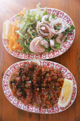 路过一次就会恋恋不忘的店,在一根巨大的坏男孩烟囱岩下,种满了花卉,吃货们在花丛中,味道没有太多特殊,凉拌茄子的小菜可以很开胃,但位置总是爆满,二楼有空位要等到晚上7:30之后才开放。