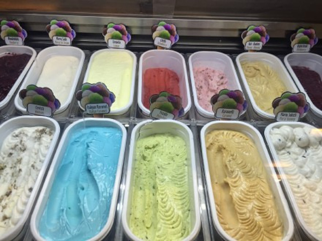 博德鲁姆的冰淇凌,已意大利口味为主,没有看到法国口味,每家冰淇凌都充满了颜色,入口QQ的,不是入口即化的那种。房间的布置充满了情调,有壁画有浴缸,卖的不仅是冰淇凌,还是一种生活方式。