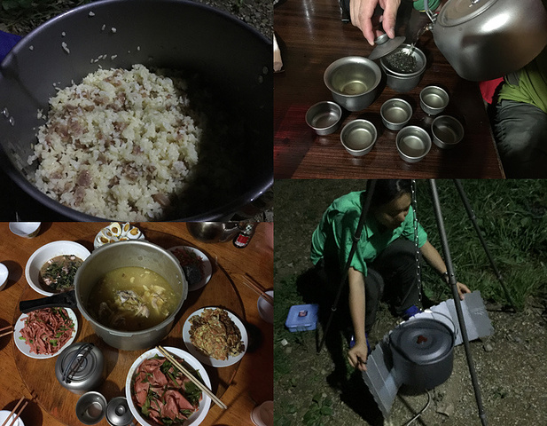 我们扎营的地方边上的小木屋也是客栈,晚饭还让他们帮忙炖了鸡,借了地方吃饭;也因为我们要露营所以背包比较大,如果不准备露营的驴友只需要带一些路上吃的水和食物就可以了;