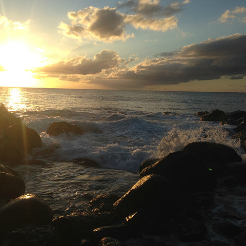 今天是自驾游,毛里求斯是左侧通行,司机坐在右侧,当地的路况一般,车速超快,但是同行的小伙伴还是跃跃欲试,嘿嘿,在异国他乡伴着清风,黑人音乐,一路美景,一路欢愉,真是不虚此行啊。红顶教堂个人觉得一般,没有传说中那么好,商业炒作啦,去得路上遇到一颗“精灵树”,我给起的,哈哈,进去拍个照,5个人一共被蚊子咬了100多个包,醉了,我老公被咬了至少50个,哈哈哈,自驾游的好处是可以去那些旅行团不去的美景,西海岸公共沙滩沙子细软,很棒,这是同行小伙伴“小王子”推荐的,超赞,中午在大众点评口碑不错的小四川吃午餐,东西不错,有点小贵,不如昨天的中国花园,个人感觉。之后前往西南海岸的灯塔看日落,绝美啊,小王子和媳妇来这拍婚纱照的地方,真的太美啦,不过看日落要走过一片“石头地”,真是历尽千难万险,跋山涉水,千里迢迢,不远万里,漂洋过海来看它啊,说多了是眼泪(手划破啦),总之,日落最美O(∩_∩)O~~