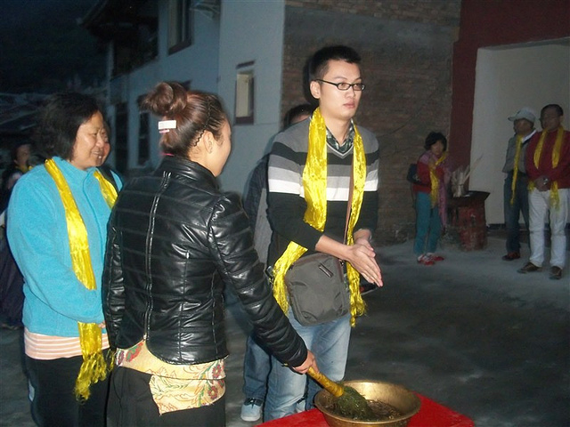 游玩黄龙下来四点多了,我们没有停留太长时间,五点上车集合继续出发后,七点多导游带我到了一家藏族餐厅,很有藏族的特色,进门之前还要跟着他们的传统,洗手、跳火盆、转转经筒、摸牛头。我们一个团坐一个房间,吃的菜都很合我的胃口,主人也和我们互动做游戏,很好玩。这就是跟团的好处,自驾游是很难找到这些特色的活动的。晚饭过后,我们便立即启程,抵达了九寨沟山下的酒店,因为明天行程比较多,大家回到酒店早早的就睡了。