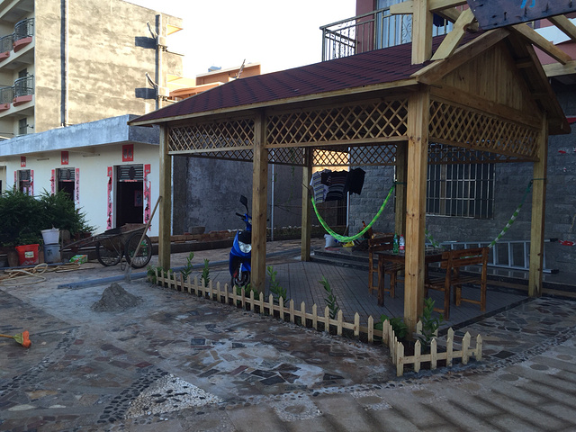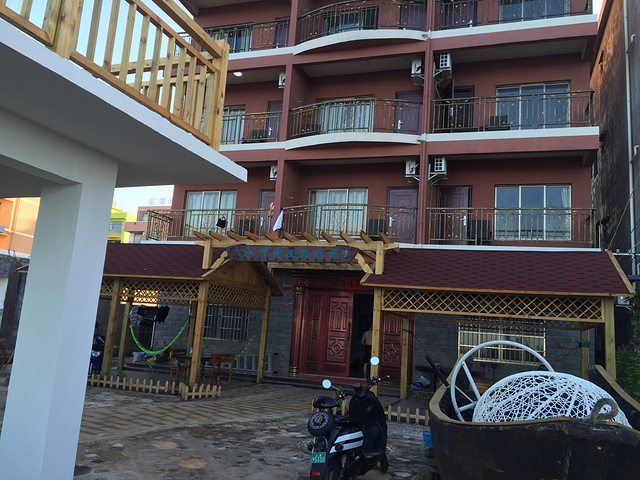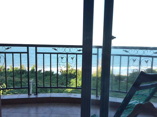 在涠洲岛住宿我选了很久,虽说住在东边很安静,但是西边人多才热闹不是,南来北往的,一起骑车买菜拼桌喝酒聊天,多好玩;南湾那边,就不要考虑了,太脏,海边好多垃圾,还靠近菜市场,臭的很。选来选去最后选的水中央酒店,在滴水丹屏上面,离海边很近,几分钟就到。房间很干净,我最喜欢房间的窗户,很矮,可以直接跨过去,坐在阳台的躺椅上看海看日落,很舒服。房费在去哪儿订的是238。