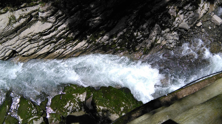 河道中断突然的变窄,河水也变得湍急。夏日炎炎,总是有一份水意。