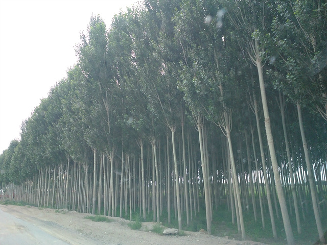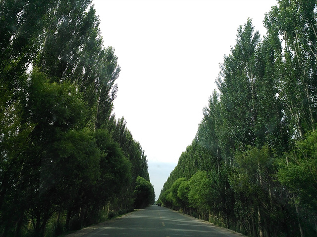 道路两边的白杨树,小白杨呀小白杨,根儿深叶儿壮,守望着北疆,
