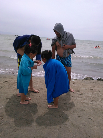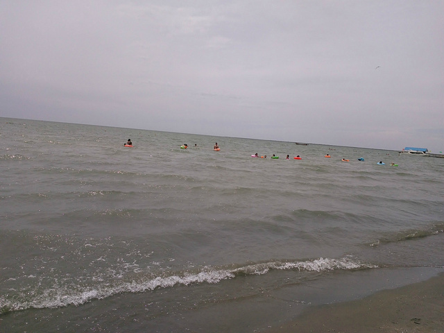沙滩,天气不够晴朗,确给整个湖水增添了广袤无边的感觉。水温尚可,游泳的多是小朋友。