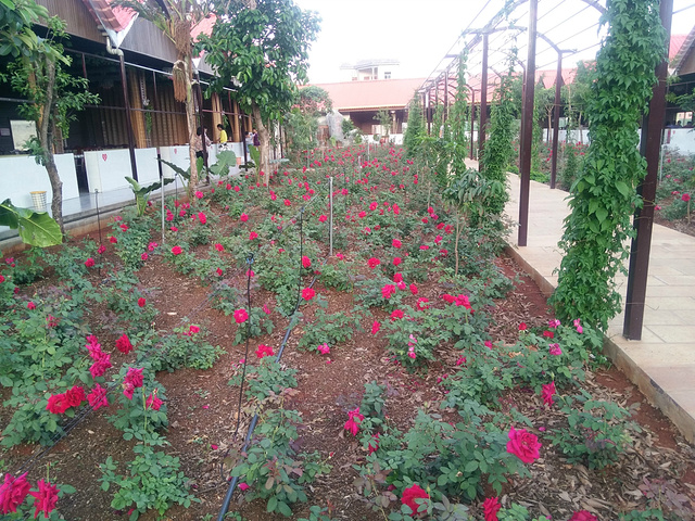 盛开的玫瑰真的很美,伴随着玫瑰的香气,在这里,很惬意,这些玫瑰都是可以食用的。