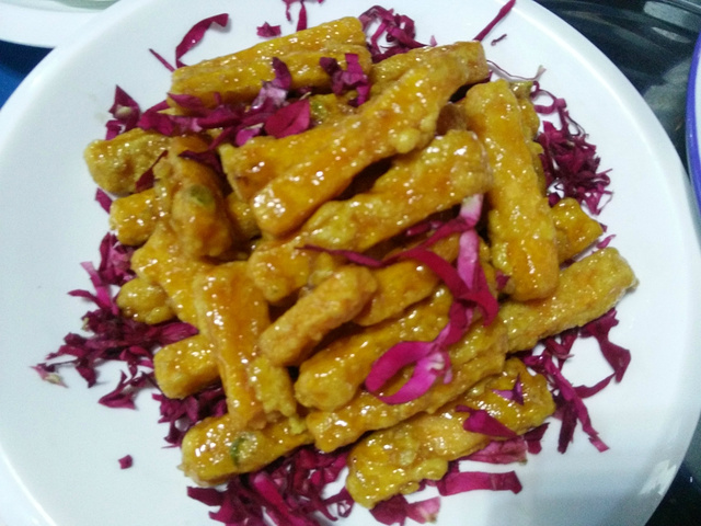 这是我在竹园玫瑰湾最爱的一道菜,脆皮红薯,在每个人吃了一口后,一定忍不住夹,真的太好吃。