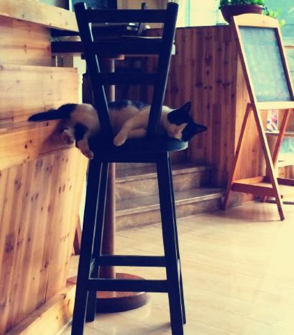 我也从小就和喵星人打交道,最能干的一次是爸爸听到我家小咪一声叫,进来一看发现我嘴边都是毛。当然,我是爱猫人士,我咬小咪那是少年不懂事。记得高中的时候,就说过要开一家猫猫狗狗花茶店,和很多同学谈过这个理想,结果,“有猫在”实现了我的梦想。