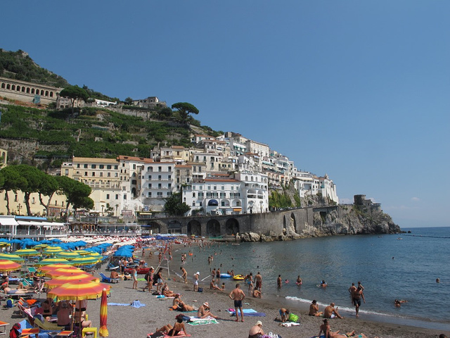 Almafi Coast是意大利很著名的旅游圣地,沿海的小镇很多,Almafi就是其中的一个。个人和五渔村风景差不多,下次不会再来了。另外意大利的沙滩有些是要收费的,即使免费也只是游泳免费,如果想要躺在椅子上晒太阳还得另收钱,让我这个生活在澳洲多年的人很不屑。看过之前游记的同志们可以看出,在澳洲,最不缺的就是沙滩,而且还是免费的。有些沙滩走上几公里一个人都没有,跟自己的私人沙滩几乎毫无区别。在Almafi Coast,没有哪个海滩是沙子的,全部是小石子,太烂了。就这情况你还收我钱!当天我就去海里淌了淌地中海的海水,然后回酒店睡觉。
