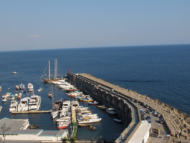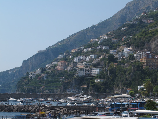 来到这个Almafi的小镇也颇为曲折,问了无数人,没有一个人能给出准确的答案,什么火车,船,要不就是汽车,换乘站也是各有各的说法。我们最终选择了从那不勒斯坐长途车,70公里,最后一站就是 Almafi。但是汽车的首发站不确定。我们住在火车站附近,酒店的员工说汽车有可能,听清楚是有可能在那里停,也有可能不停。我去!公共交通也太不靠谱了吧!为了确保万无一失,我们一早从酒店打车到了那不勒斯港,汽车绝对会在那里出发。车票是5欧元一个人,便宜的我差点没有哭了, 70公里阿亲。在布里斯班,单程上班的车票是6刀,距离11公里!