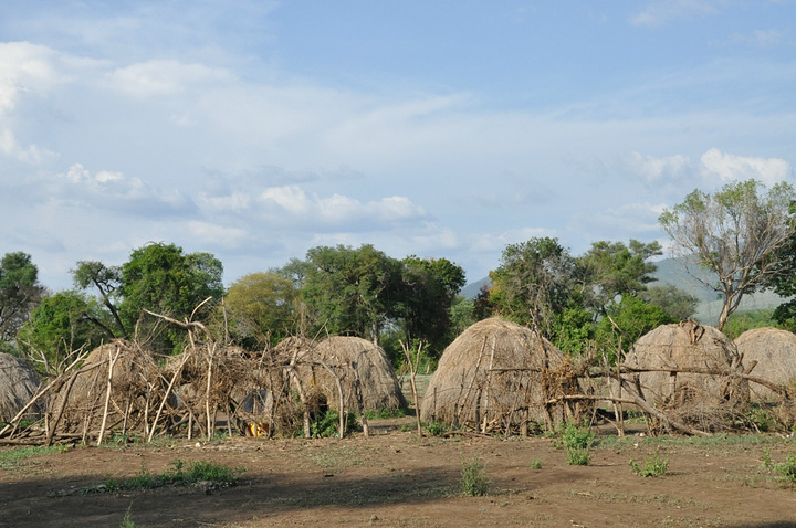 在导游和警卫的带领下,我们进了村子,有十几个泥土茅草棚,有村长和讲英文的联络官,村民们为我们做了表演,门票300,照相收费为3 birr一张,。我还进到了一家人中,一个老婆婆正在做饭,屋内很黑,没有窗户,很小的里外二间,里面是男主人的卧室,很小,很简陋,外间是厨房和杂物间。