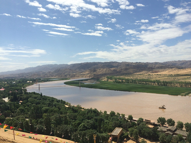 沙坡头景区分为黄河区和沙漠区,一进景区门首先是黄河区,在这里可以体验羊皮筏子黄河漂流、快艇、蹦极、黄河索道、滑沙等娱乐项目,人均约300-400的样子。这里的自然景观站在沙漠下方是看不到的,你只有到沙漠上面才能一览黄河区的美妙景色。PS:黄河区娱乐流程建议先到沙漠下方购买120元的缆车+飞黄腾达+滑沙的通票。先坐缆车上到顶端,滑沙下来,再坐缆车上去玩“飞黄腾达”最后又到了沙漠下方。