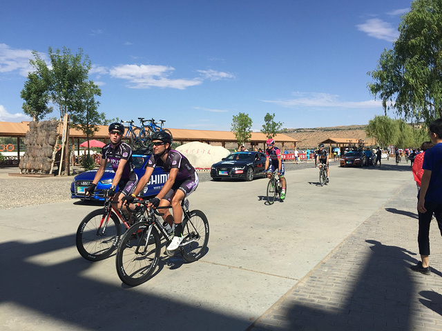 8点起床,8点半早餐,9点出发。一路向西。中卫的道路只能用俩字形容,那就是“展堂”!这里视野辽阔,路又宽又直。恰逢“环青海湖国际自行车比赛”,车子需要绕行,但是路况也相当不错。大约半小时的样子,就到了沙坡头。