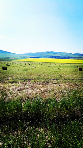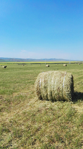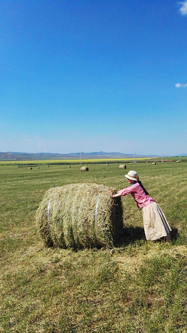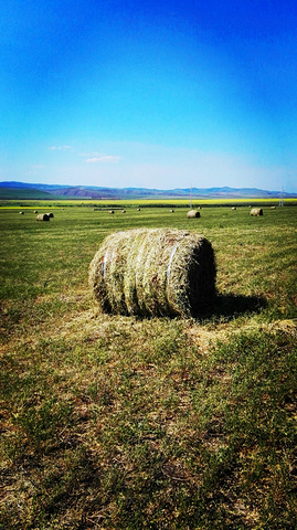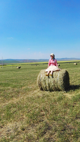 曾看到电脑壁纸里草垛的图片,总以为那是电脑合成的,直到我看到关于呼伦贝尔的游记后,才知道那是真的,于是,就非常想见到草垛。来呼伦贝尔之前,我的微信和QQ里就加了几个呼伦贝尔的司机朋友,我问他们什么时候能看到草垛,一致的回答是八月,可是让我等到八月再来,我已经是迫不及待了。一直为错过草垛而遗憾着,车子行驶在路上,我还念念不忘提这事。师傅在带我们去天下第一敖包的路上,哈大马忽然对我说,草垛!我欣喜若狂,飞向草垛!