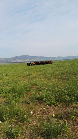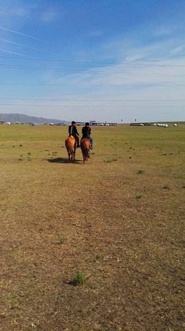 这里到处是骑马的马场,不骑马,怎算来过草原?走,骑马去喽!戴上头盔,穿上马甲,威风凛凛,英姿飒爽的架势就出来了。坐上马背,登好马镫,抓好缰绳,走起!当马走起来的时候,可不是那么稳了,马背一动一晃,我感觉我就要掉下来了,不时惊呼,而牵马的人却喝住我,不许叫,防止马受惊了,会乱跑乱跳,我更紧张了,怕自己控制不住会惊叫,那样会发生怎样的后果,我不敢想象,我反悔了,走了不到二十米,执意要回去,牵马的人说,人家六七十岁的老太都能骑,他肯定是瞧不起我了,老丢人了,好失败的感觉。再一望,我们的两个男人已骑着马消失在我的视线里。