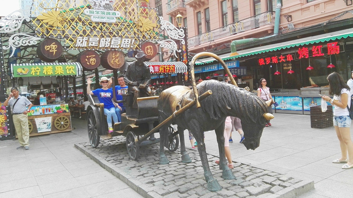 哈尔滨中央大街没有车辆,只有步行的人,很是干净,小石块铺成的路面,被来来往往的人踩得光溜溜的,街道两旁的大树,估计也有上百年的树龄了,走在树荫下,一点都没有夏天的燥热。