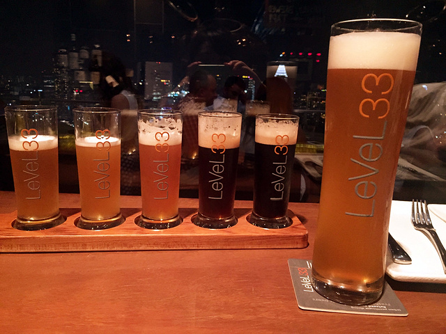 我是被当地人带过去的。这是全球首创的高层迷你酿酒餐厅,在离地 156 米的顶层套房,LeVeL33将欧洲高科技工艺酿酒厂、餐厅与休闲吧合为一体
