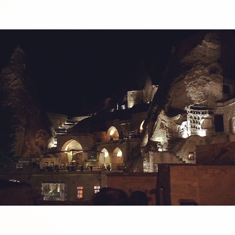 夜幕下的洞穴酒店再加上灯光诡异又好笑,好像分分钟要变身石头人wwwwww