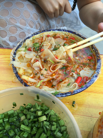 拌洋芋擦擦,鉴于我的工作位置,我觉得枣园镇枣园公园对面的加气站门口,有位老大爷的摊子、那个绝对给力。