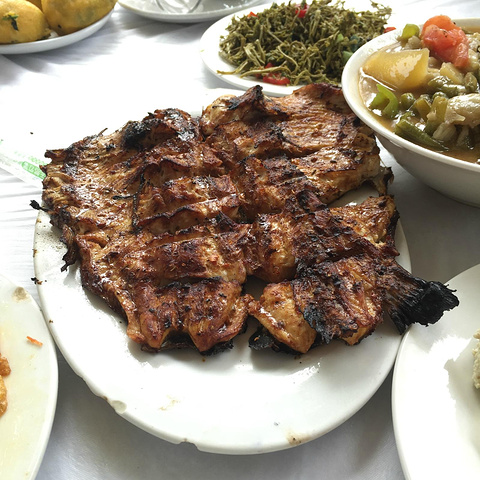 碳烤虹鳟鱼——香味扑鼻,鱼肉外焦里嫩,鱼皮有嚼劲,刺少味鲜,相当入味。